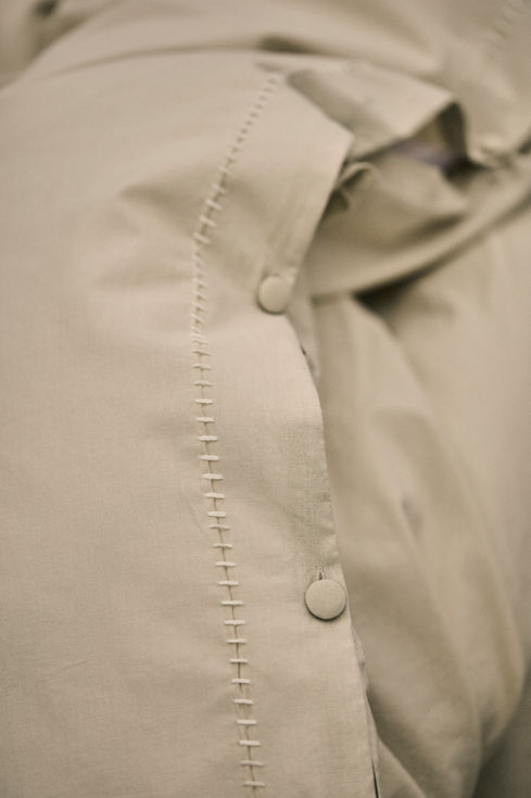Orngottet har en 2 cm oxford-ram. broderad som, sidöppning och flik. Päslakanet har broderad som, bottenöppning med textilknappar. Sängkladerna levereras i en exklusiv presentförpackning i naturpapper.