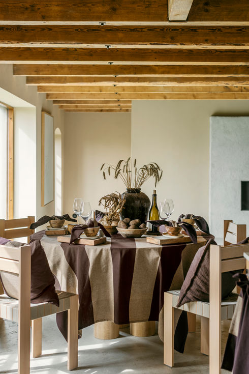 Cultra duk kommer i två olika storlekar. Upplev rustik charm med serien Cultra, tillverkad av återvunnen bomull med breda ränder i varma bruntoner på en naturbotten. Förnya köks- och matplatsen med trevliga textilier när du dukar upp till en stämningsfull middagsbjudning.